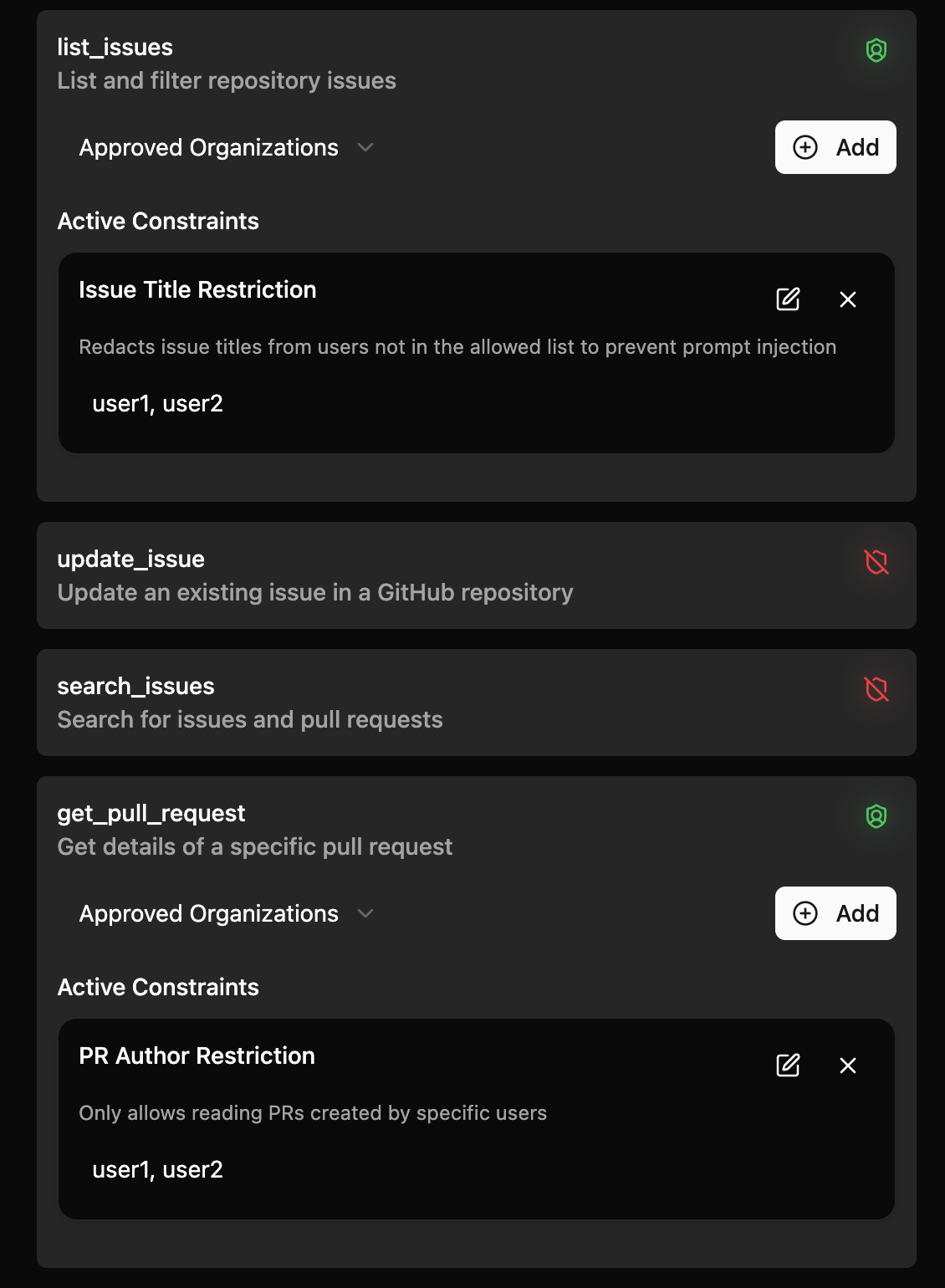 - Guardrails: Apply security policies to tool calls without modifying servers